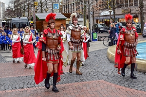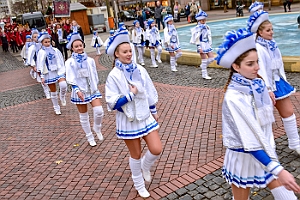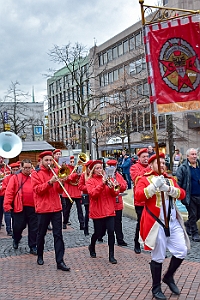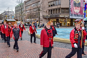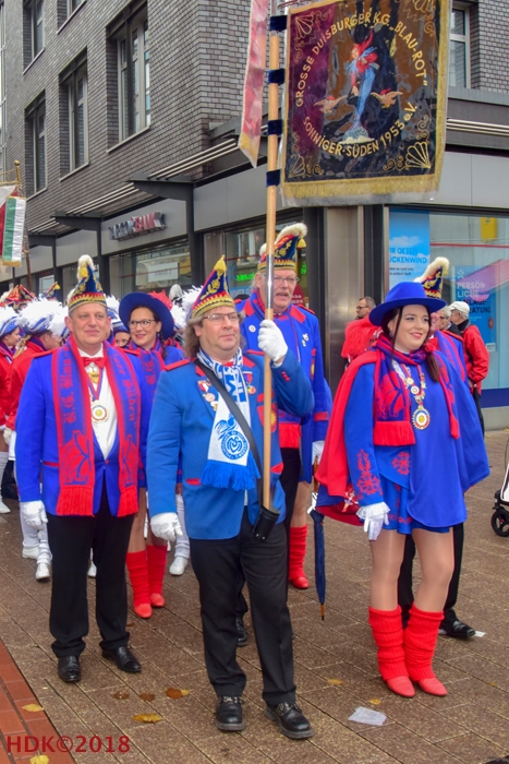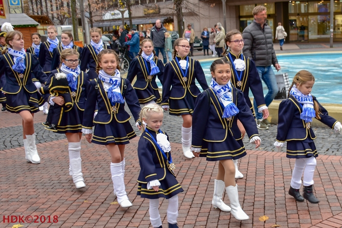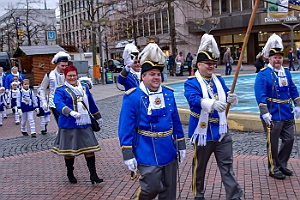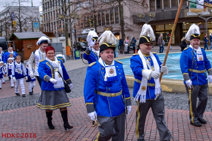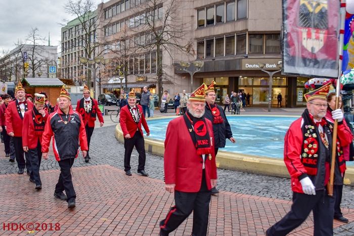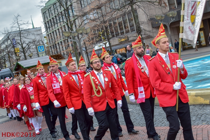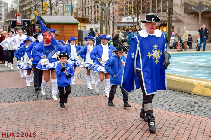 Das traditionelle Hoppeditz-Erwachen 2018 mit dem Zug der Gesellschaften über die Königstraße zum König-Heinrich-Platz. Die Narren wecken den Hoppeditz in der City und leiten die Karnevalszeit ein.