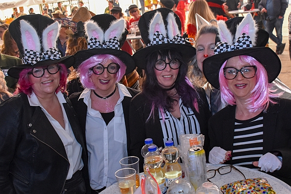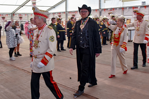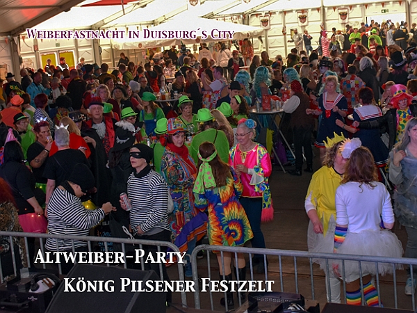 Die Sonne lacht als im „König Pilsener Festzelt“ pünktlich um 11.11.Uhr der Straßenkarneval seinen Anfang findet. In einem neuen Zelt an alter Stätte gehts nach alter Sitte den Männern, voran unser OB Sören Link, an die „Wäsche“. Eine super Altweiberparty steigt als der Schlips abgeschnitten ist.