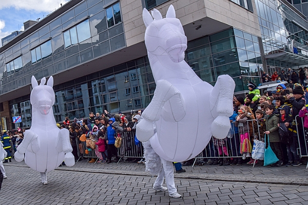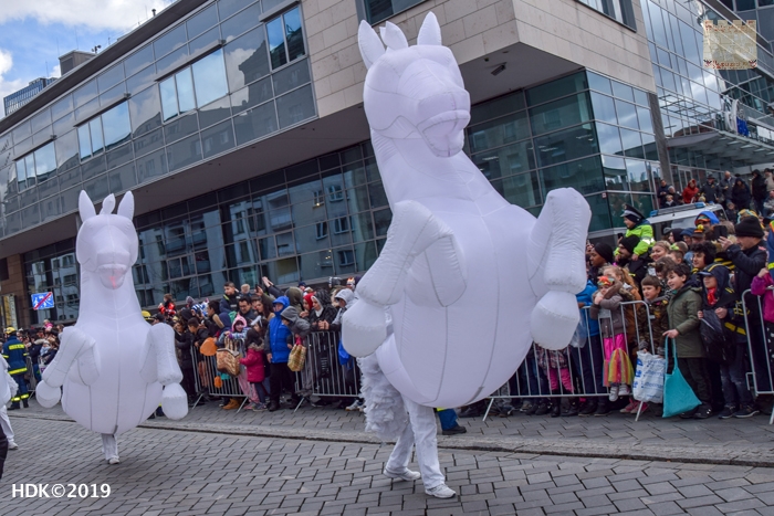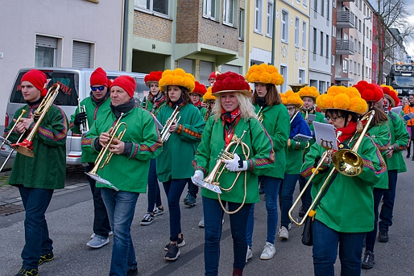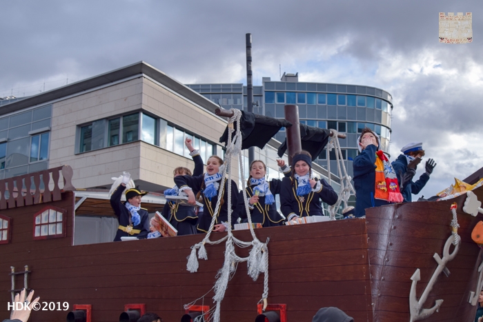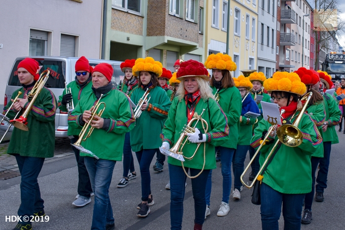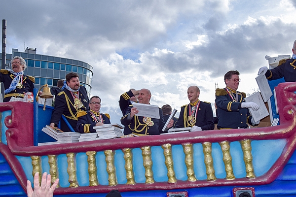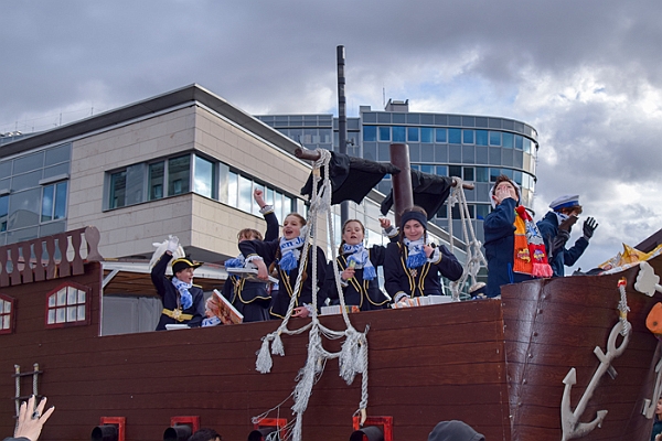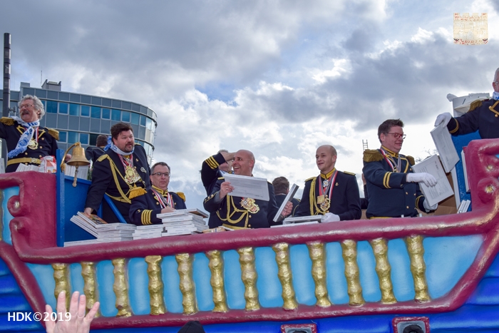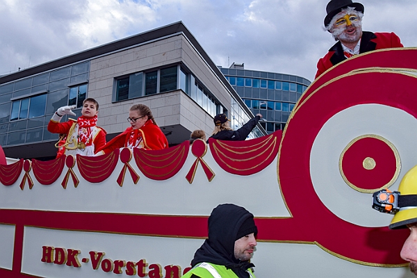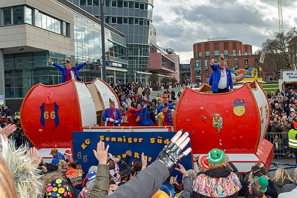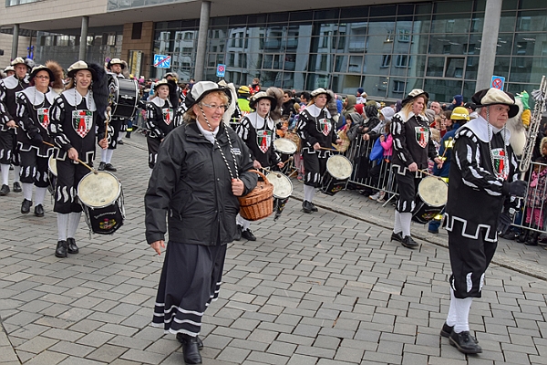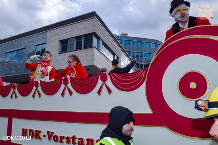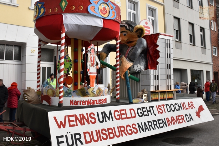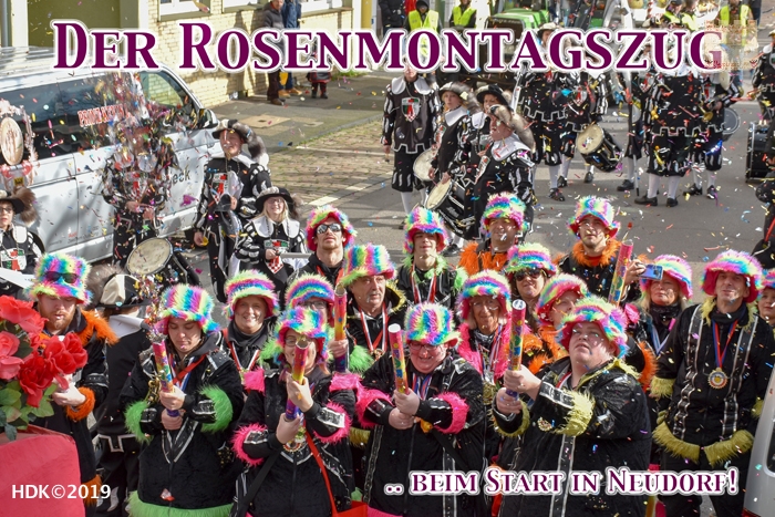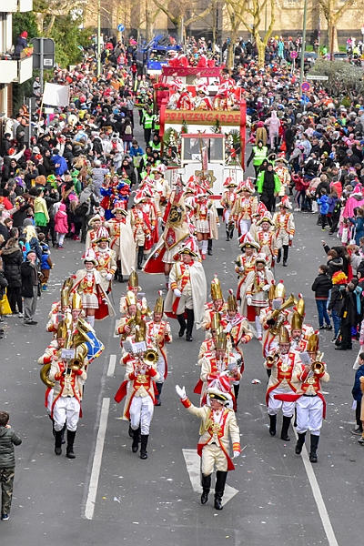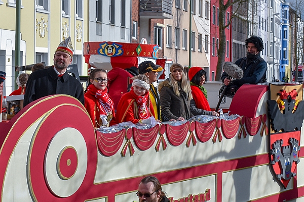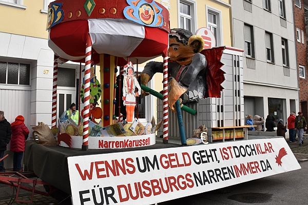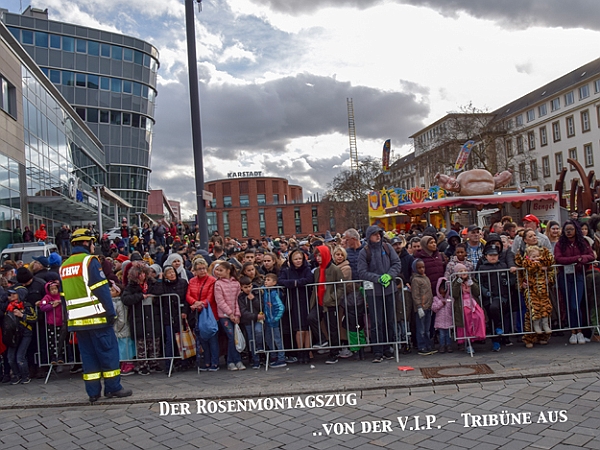 Der Sturm hat den Start des Rosenmontagszug um 2 Stunden nach hinten „geblasen“. Aber Pünktlich um 15.11 Uhr geht es dann los, sogar die Sonne lacht. Der Zug schlängelt sich auf bekannter Strecke durch die City. An der VIP-Tribüne am Stadttheater vorbei bis zum König Pilsener Festzelt im zukünftigen Mercatorviertel. Im Schatten des Zeltes endet dann auch in diesem Jahr der Zug. Weiter geht es dann mit dem „Närrischen Heerlager“ im Festzelt.