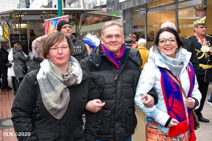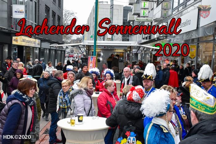 Der Sonnenwall 8. Februar 2020- Karnevalshochburg in der Duisburger City. Straßenkarneval, eine Gemeinschaftsveranstaltung von HDK, Mode Holt, Cafehaus Dobbelstein und den Restaurants „ Rosso Picante“ und „Zur Laterne“.