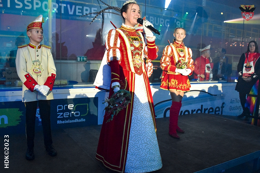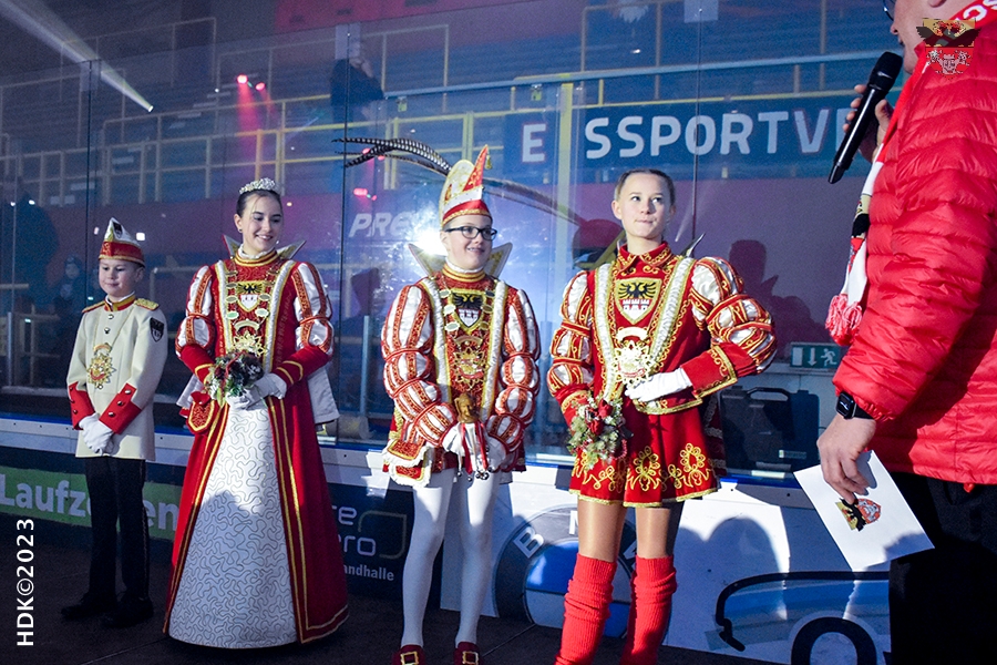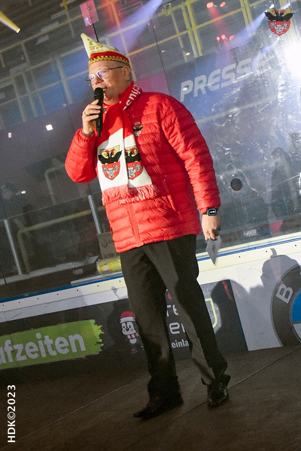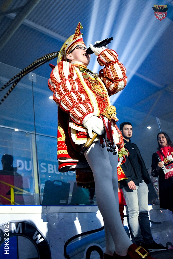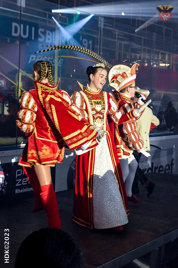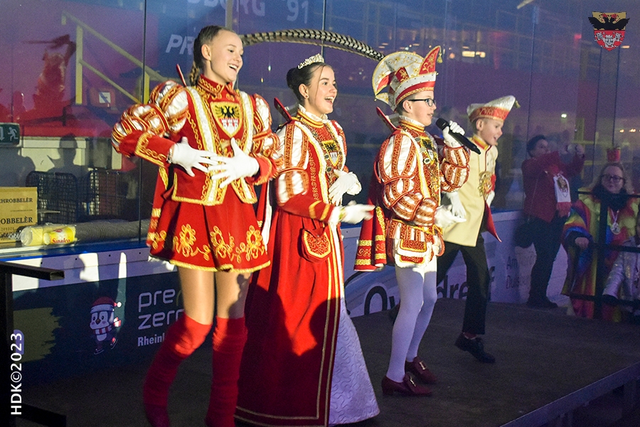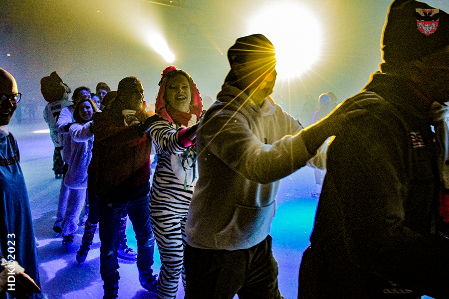 In der PreZero Rheinlarndhalle die „Karneval On Ice“ Premiere. Mit einem Eishockey-Match HDK vs. Stadt Duisburg, Endstand 3:2. Dazu kostümiertes Eislaufen zu karnevalistischer Musik von Zwei Live Acts, Stark reduzierte Einzelstücke und Cologne Unplugged .
