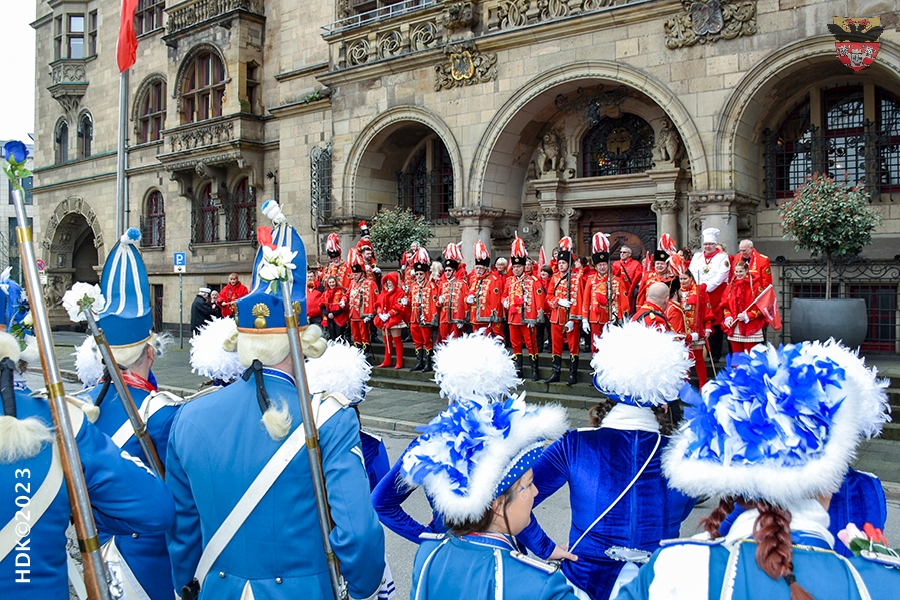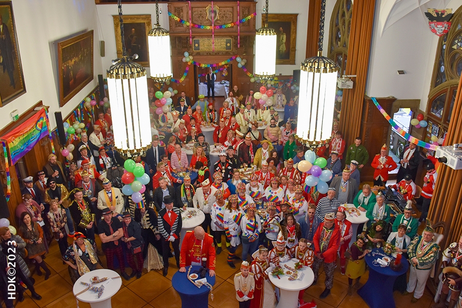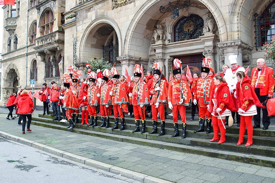 Das Rathaus in Jecken-Hand und dann zum Rosenmontagszug. Alle Zugteilnehmer mal aus einer „neuen“ Perspektive betrachtet. Danke dem WYNDHAM Hotel Duisburger Hof für die Gastfreundschaft. Auch das Heerlager ist in diesem Jahr im neuem „Gewand“ an neuem Platz. Das Flic Flac Zirkuszelt wurde zum König-Pilsener Festzelt „Am Güterbahnhof“ und bietet der Party eine Location.