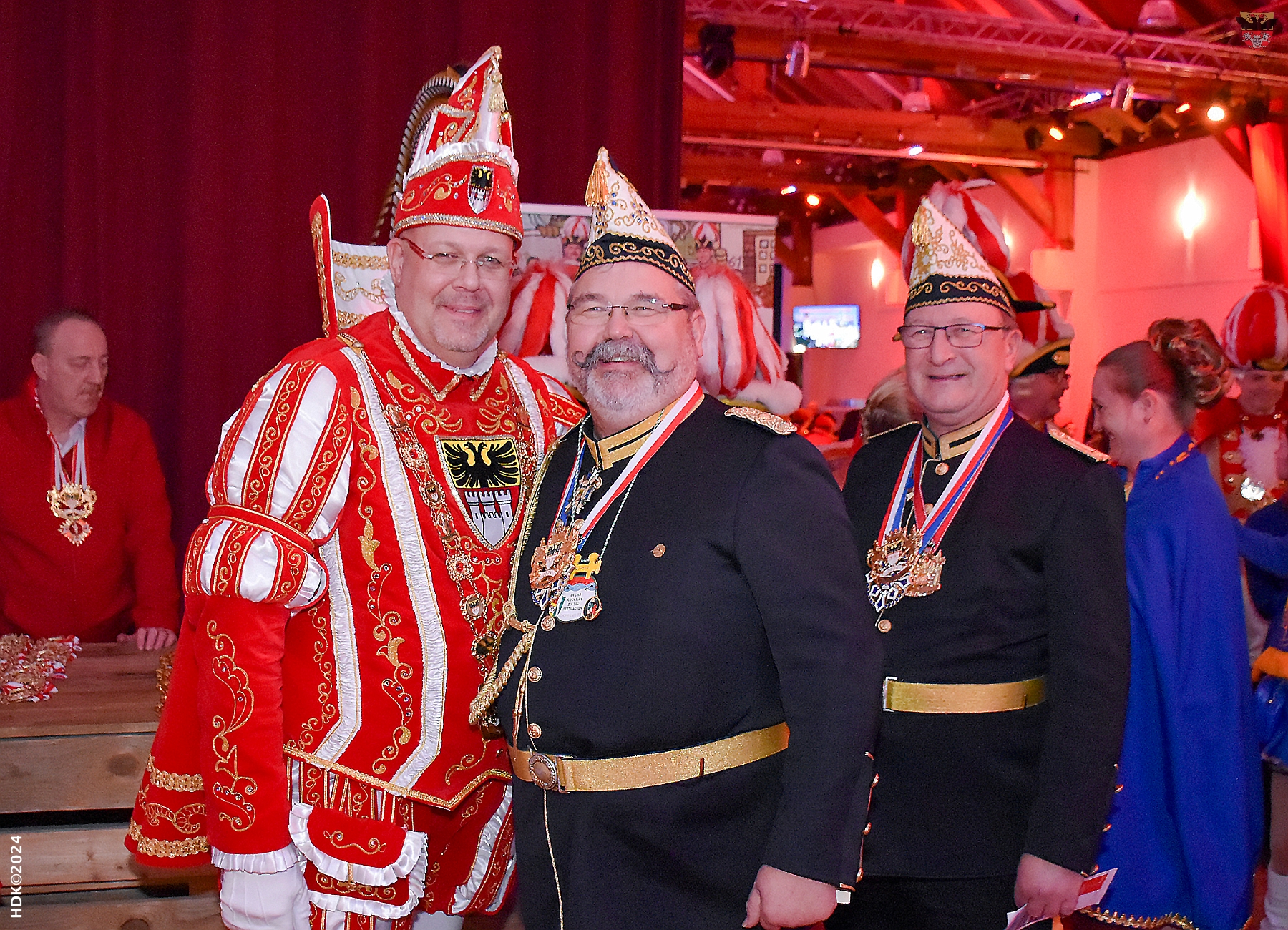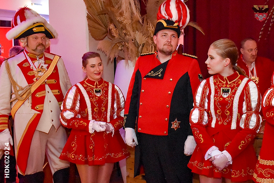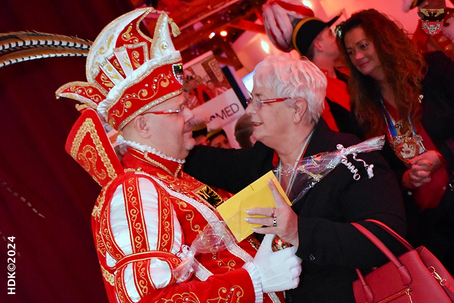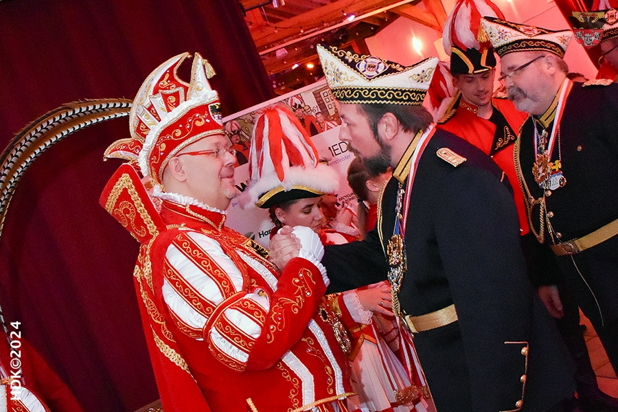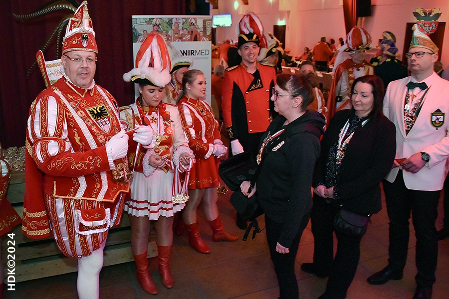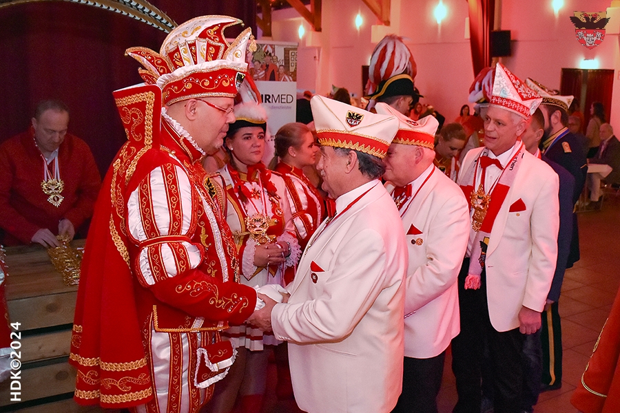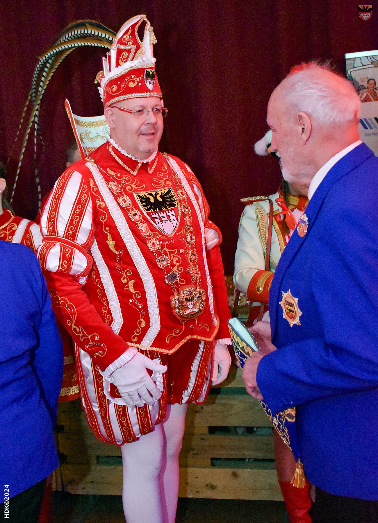 Tradition. Einen Tag nach der Kürung zur Tollität empfängt diese ein Schar von Gästen im Steinhof. Familien der Crewmitglieder, Freunde und Abordnungen der Stadt und Gesellschaften kamen zum Gratulieren. 17 ehemalige Tollitäten überreichten Matthias I. eine Collage mit ihren gemalten Prinzenbildern, auch eine schöne Tradition.