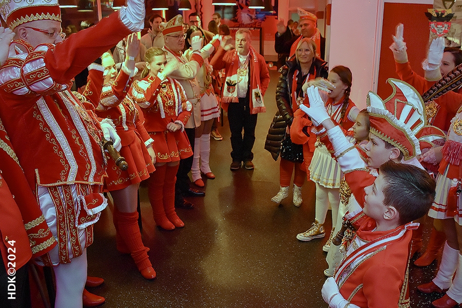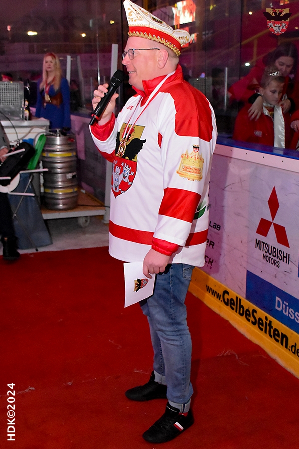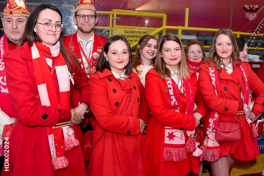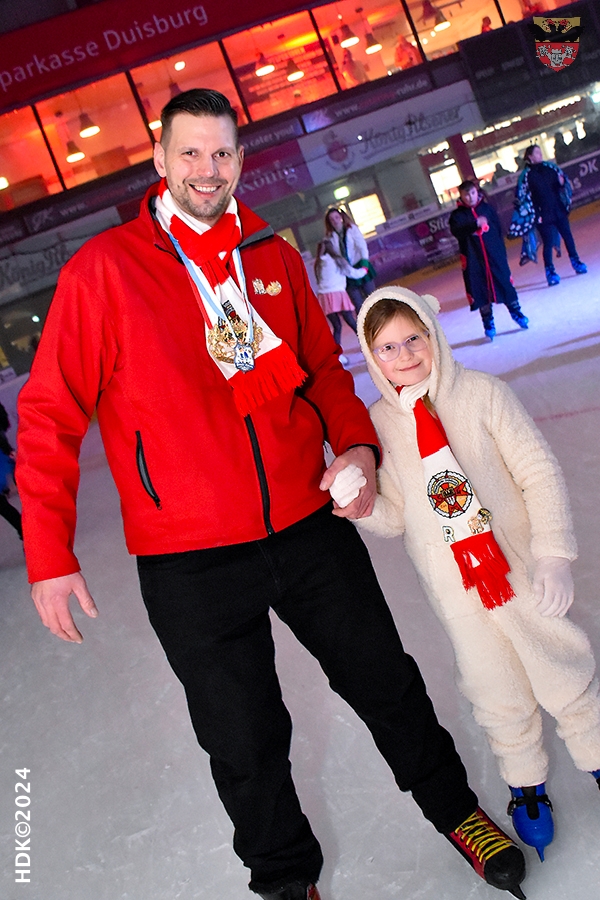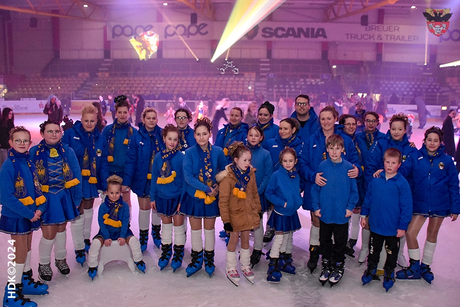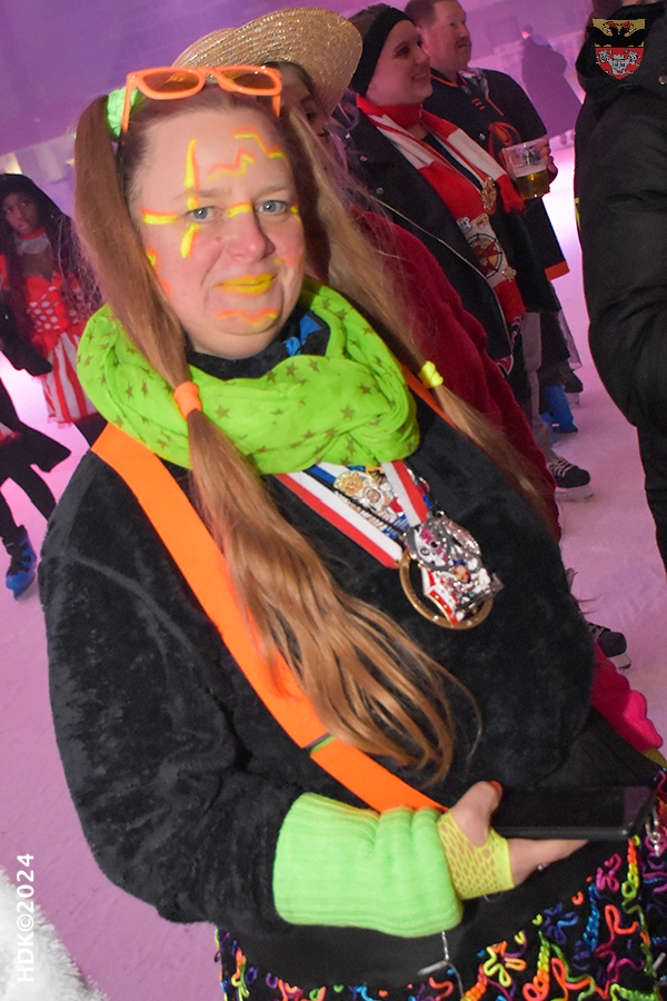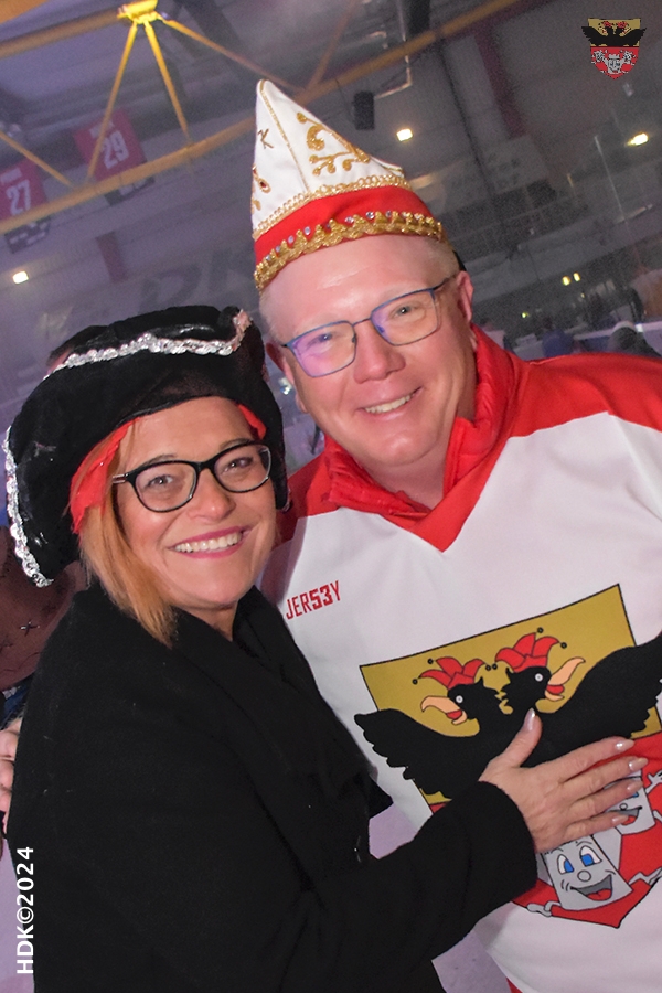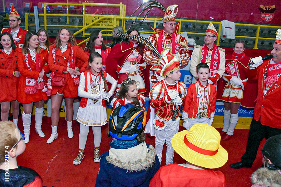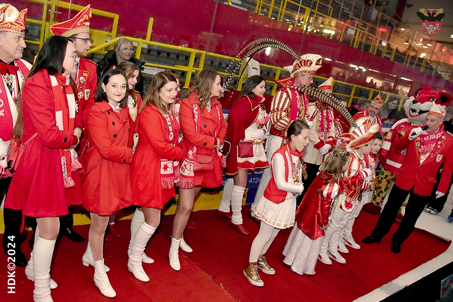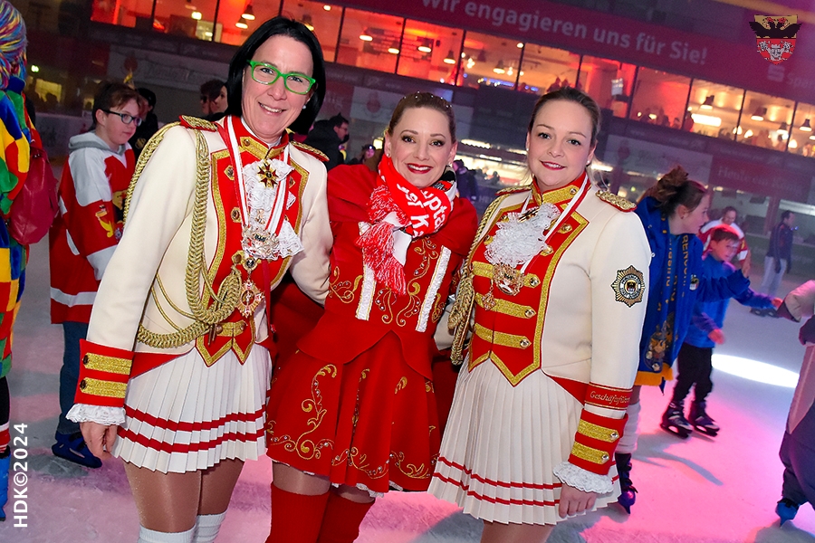 Neuauflage von „Karneval on Ice“ in der PreZero Rheinlarndhalle. Eislaufen bei karnevalistischem Show-Programm. Eishockey wurde auch gespielt, Team Karneval und Team Rathaus trennten sich unentschieden.