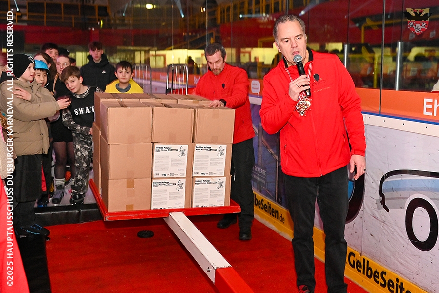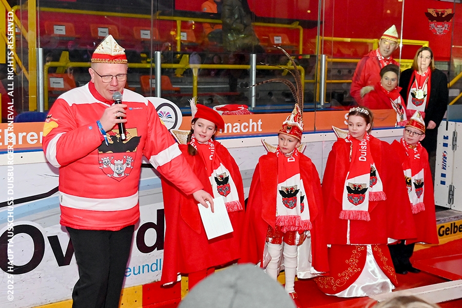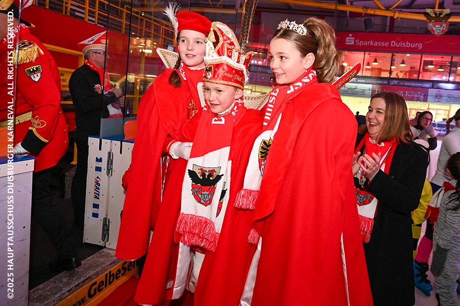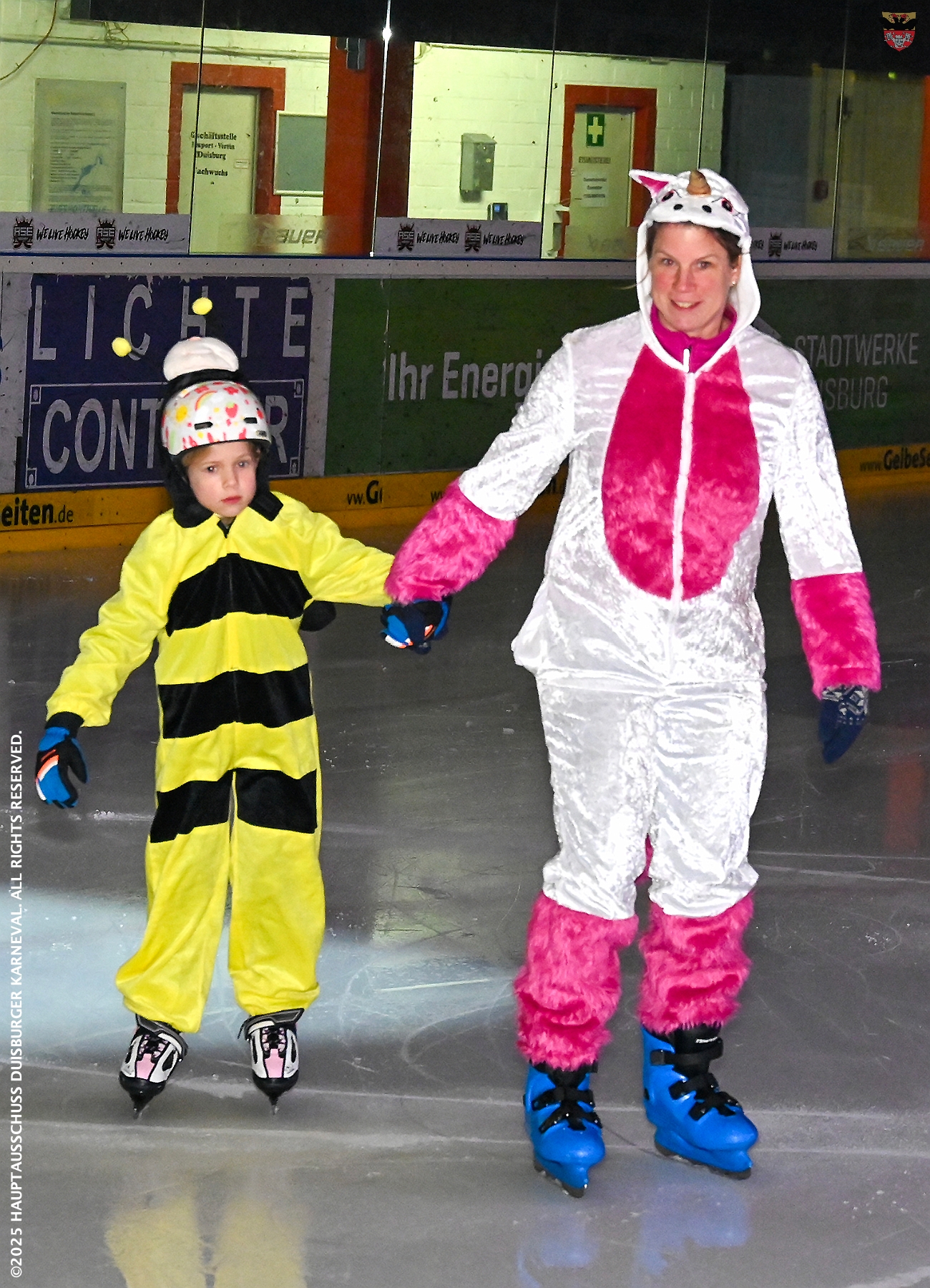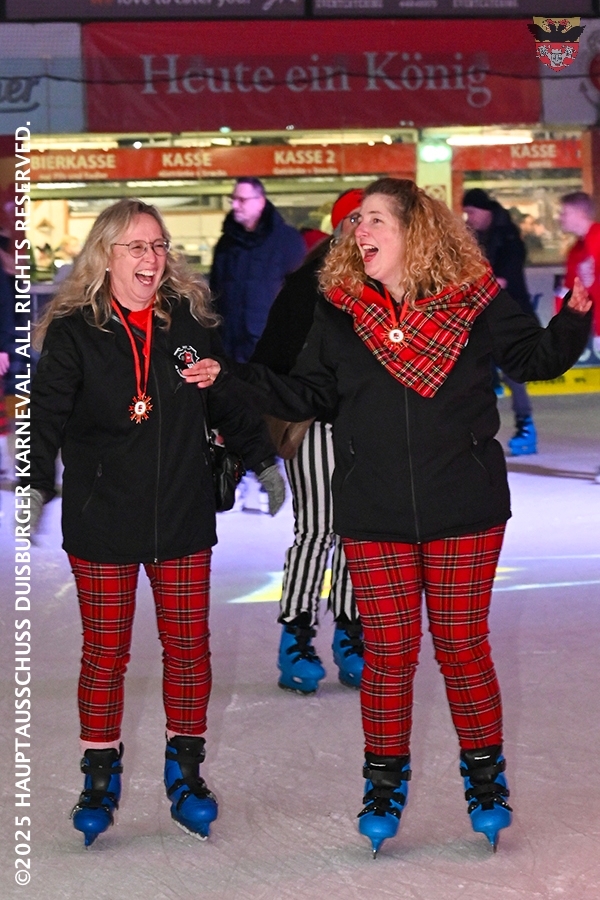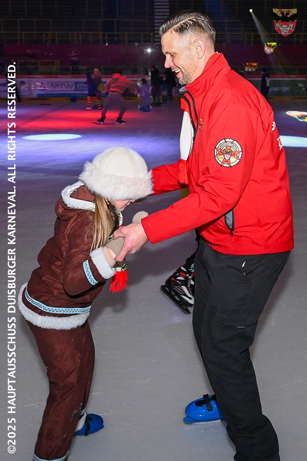 Eislaufen bei karnevalistischem Tönen. Dazu neu das Prinzenwiegen, der kleinen wie großen Tollitäten. Dann wurde auch noch Eishockey gespielt, Team Karneval gegen Team Rathaus, mit dem Sieg in diesem Jahr für das Team Rathaus.