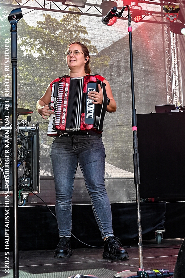 Pünktlich um 11.11 Uhr starteten wir das 8. Sommer-Biwak vom auf der Hauptbühne beim Duisburger Stadtfest zwischen City Palais und Forum. Im Programm Solo-Mariechen Annika, Gardetanz der KG Rote Funken, die Band „KASCHÄMM“, die Piraten des Südens, die „Lecker Mädchen“ KG Südstern, wir die des. Prinzencrew 2025/26 mit Toni I. und  die “Funky Marys“ und der Tanzsport vom Königreich Duissern. Für musikalische Untermalung sorgte Christian Mauermann vom DJ Duo Schwarzwaldzimmer.