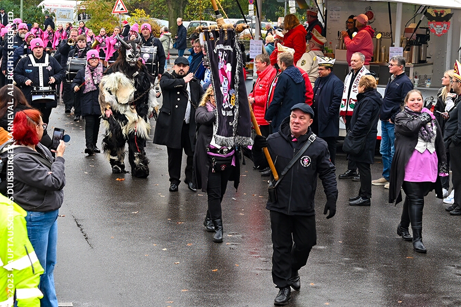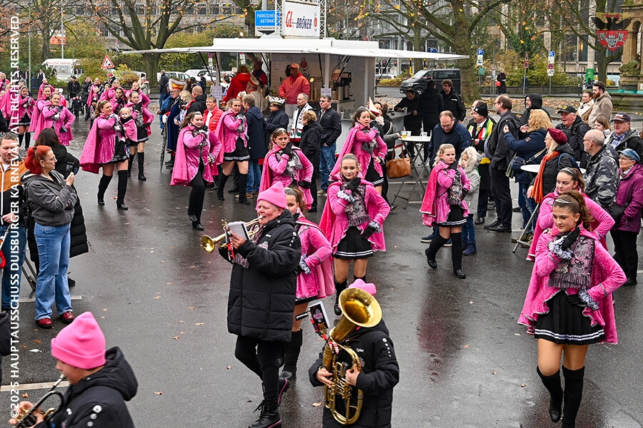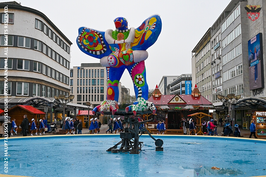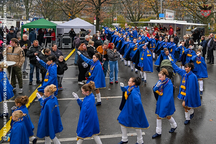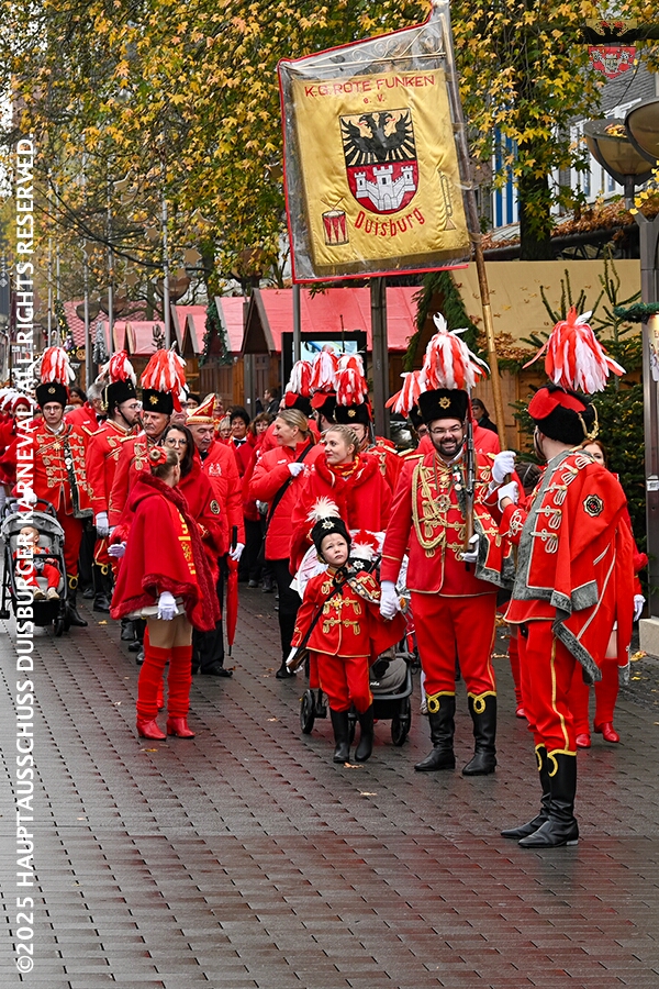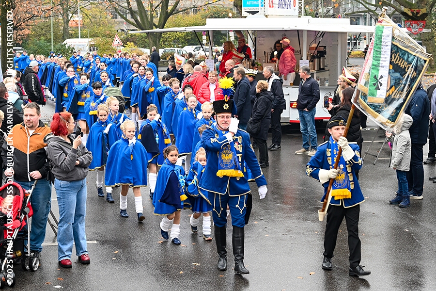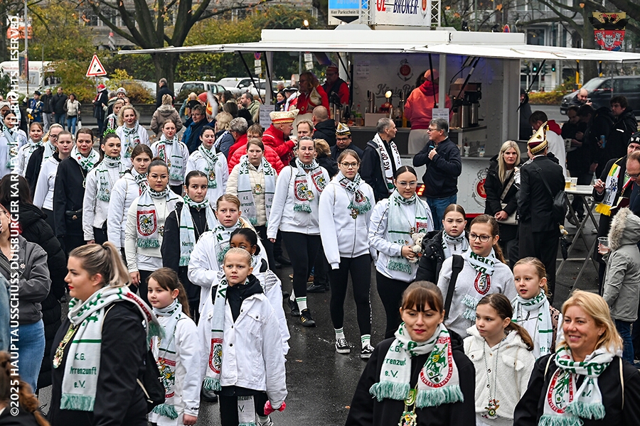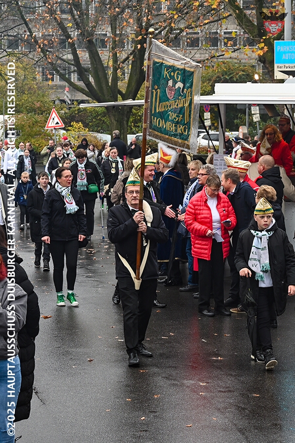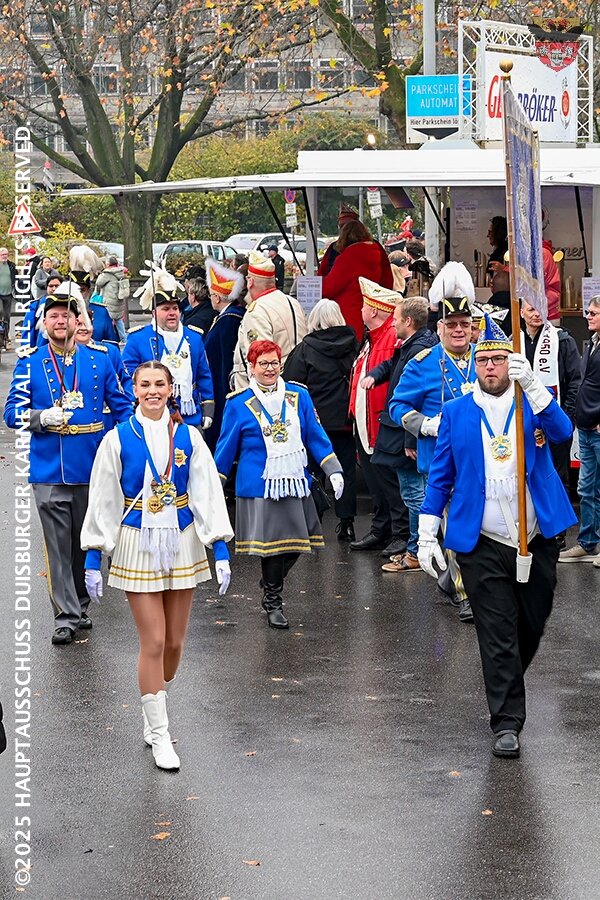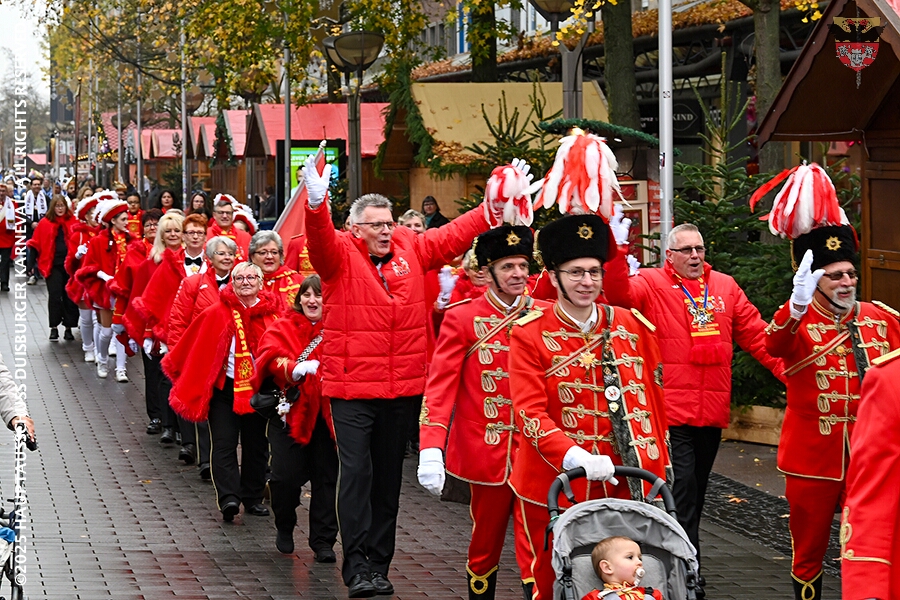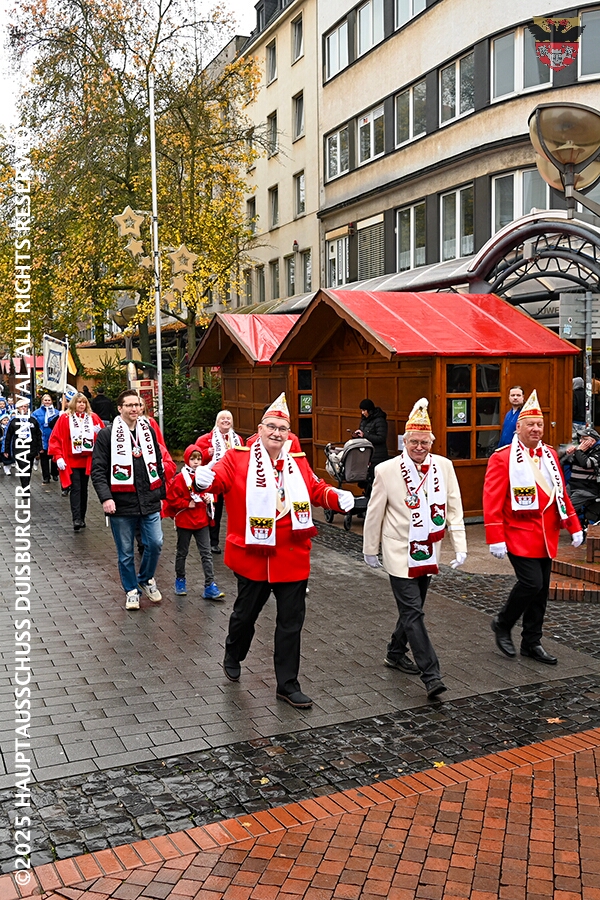 Bei typischem Novemberwetter startete der Umzug vor dem Forum. Die Gesellschaften zogen über die Königstraße, vorbei am Weihnachtsmarkt, zum Burgplatz vor dem Rathaus. Nachdem der Hoppeditz erwacht war folgte ein buntes musikalisch und tänzerisch gestaltetes Programm mit den angeschlossenen Gesellschaften.