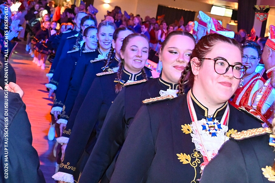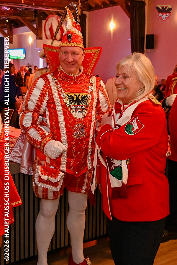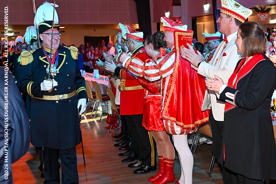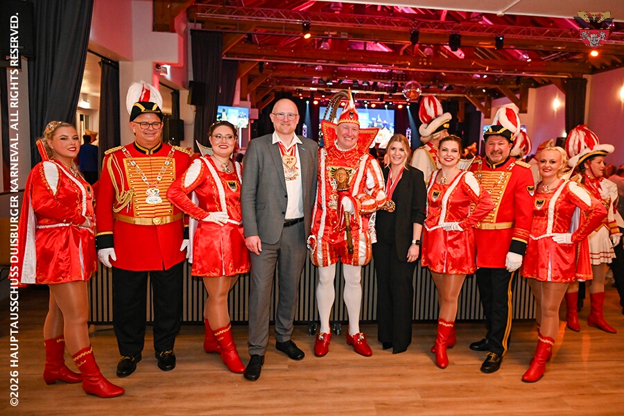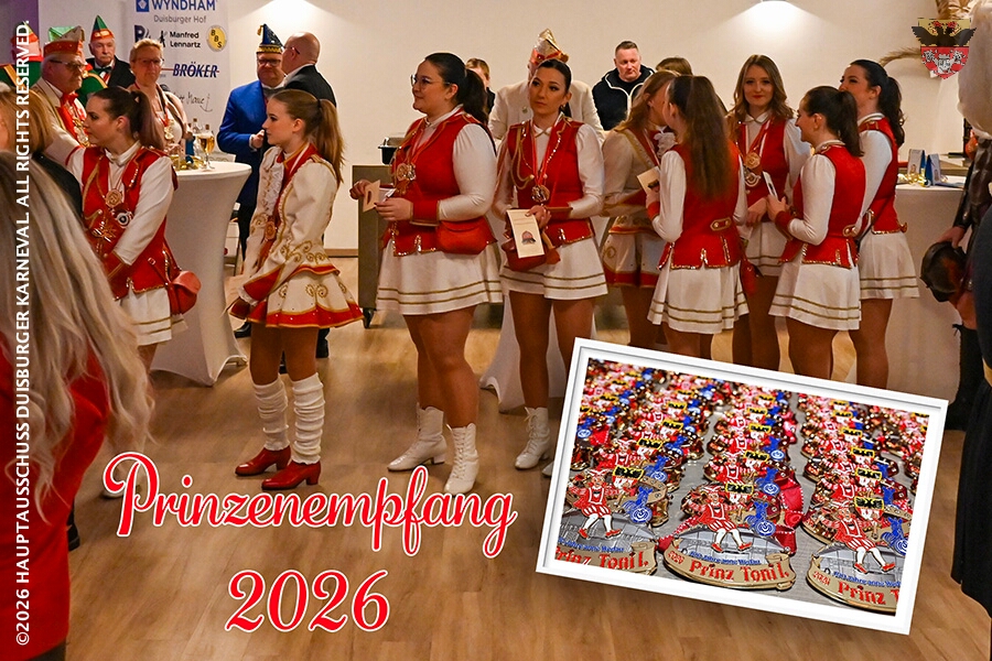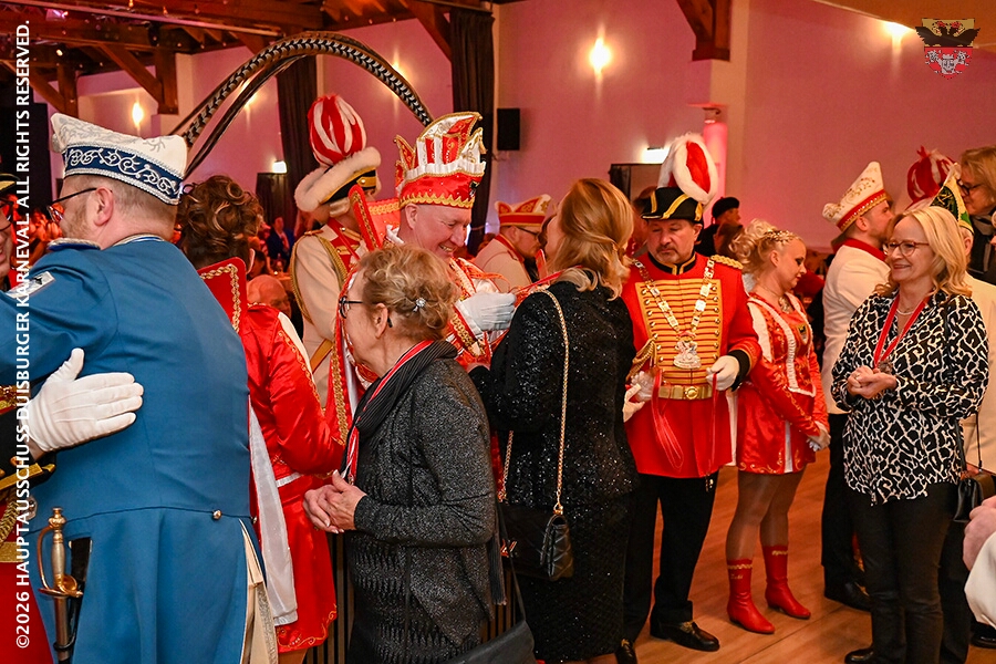Prinz Toni I. mit seiner Crew Sponsoren, den HDK-Förderkreis, Familie und Freunde. Zu Ihnen zählt aus das Prinzenpaar, Bastian I. und Steffen I.,der KGK aus Moers. Ihnen wird ein lockeres Rahmenprogramm, gestaltet von Duisburger Garde- und Showtanzgruppen, geboten.