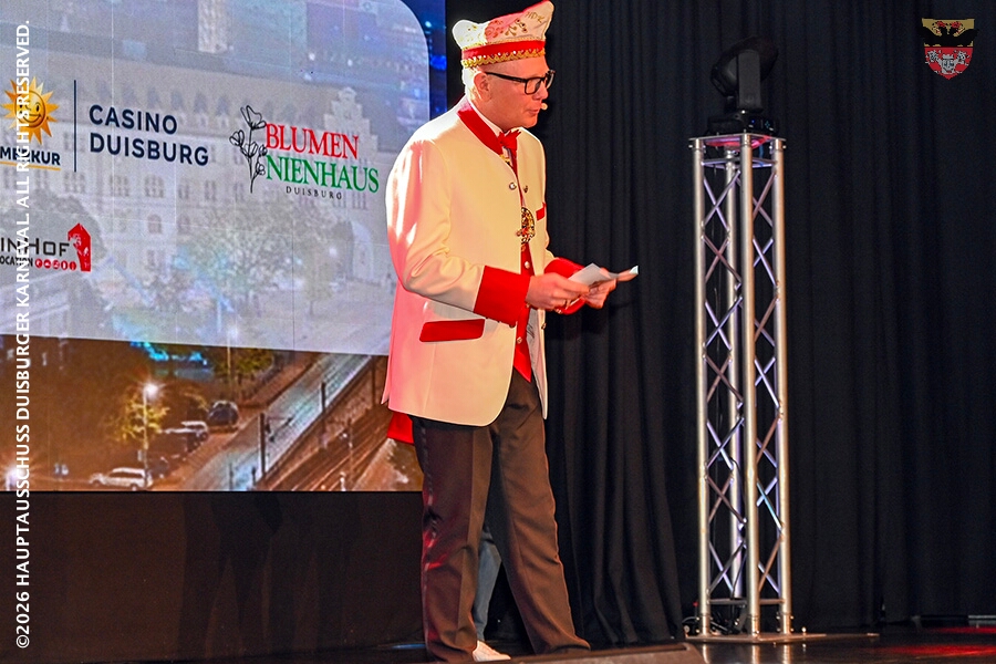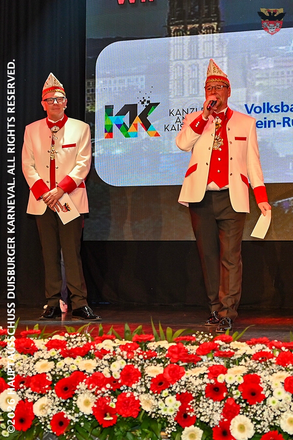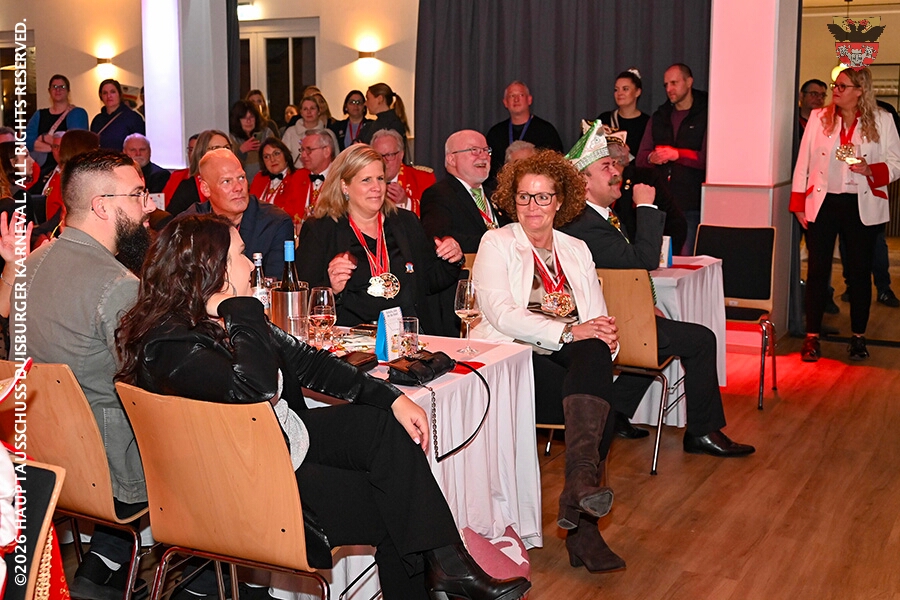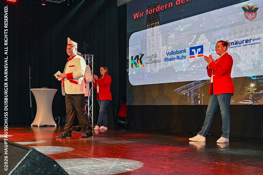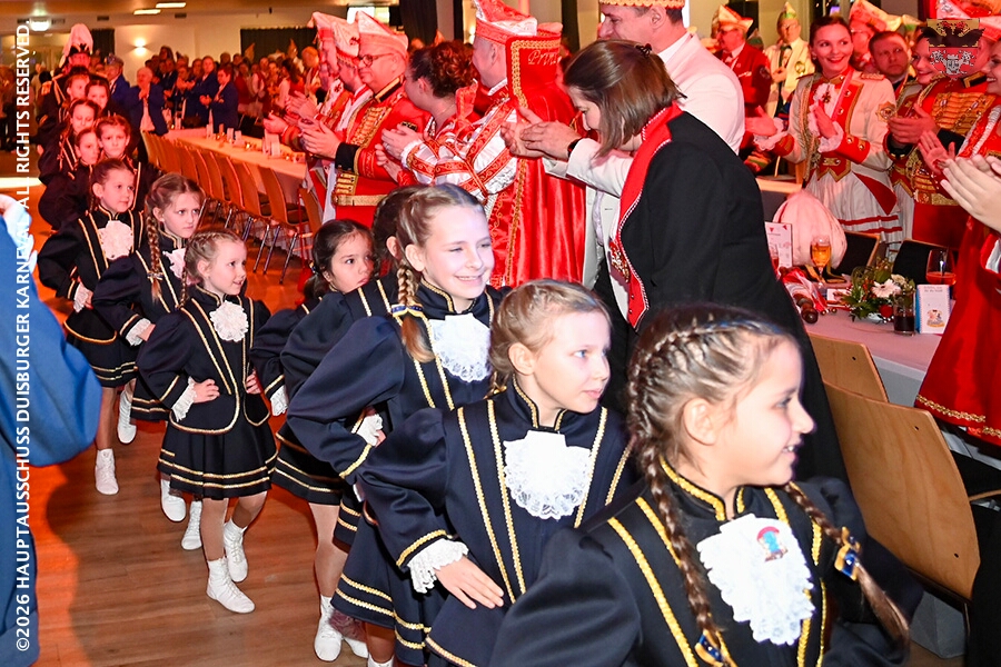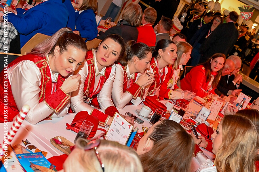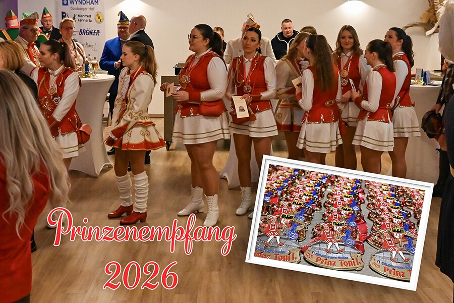Prinz Toni I. mit seiner Crew Sponsoren, den HDK-Förderkreis, Familie und Freunde. Zu Ihnen zählt aus das Prinzenpaar, Bastian I. und Steffen I.,der KGK aus Moers. Ihnen wird ein lockeres Rahmenprogramm, gestaltet von Duisburger Garde- und Showtanzgruppen, geboten.