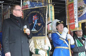Den Vorwurf von Jansen, noch etwas helauschwach zu sein, konterte Link unter Beifall: "Das ist ja eine Premiere, ich lerne noch." Für den OB stand dann- nach würdigem Abmarsch in Begleitung der Standartenträger aller Gesellschaften- schon wieder der nächste Termin im Kalender, während die Karnevalisten sich Zeit lassen konnten - und ließen. Gefeiert wurde bis in den frühen Nachmittag, und manch ein Gardist oder Tanzmariechen war anschließend noch in vollem Ornat beim Einkaufsbummel in der City zu bewundern. Auch dafür ein dreifaches "Helau"!