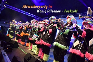 Die dollen Weiber feiern nach dem Schlips-Massaker ausgelassen im voll besetzten Zelt gegenüber vom Burgplatz eine fetzige Party.