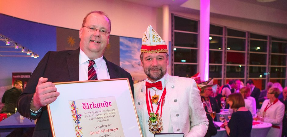 Seit 1974 vergibt der Hauptausschuss Duisburger Karneval den Ehrentitel „Bürger des Jahres“ an eine Person, die sich um die Stadt besonders verdient gemacht hat. Am liebsten natürlich an solche, die auch die Brauchtumspflege unterstützen. Beides trifft in herausragender Weise auf Bernd Wortmeyer zu. Der Gebag-Chef wurde am Freitag im Theater am Marientor mit der höchsten Auszeichnung im Duisburger Karneval geehrt.