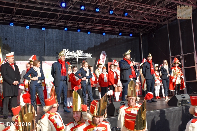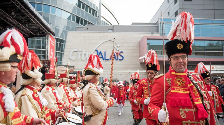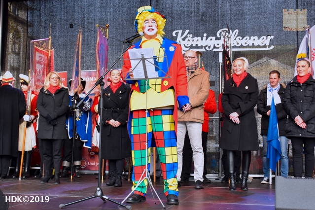 Da hätte es der Grußworte von Oberbürgermeister Sören Link auch nicht unbedingt bedurft: „Ein schönes Bild, nicht nur weil das Wetter schön ist und der Weihnachtsmarkt eröffnet ist, sondern auch, weil die fünfte Jahreszeit jetzt wieder beginnt.“