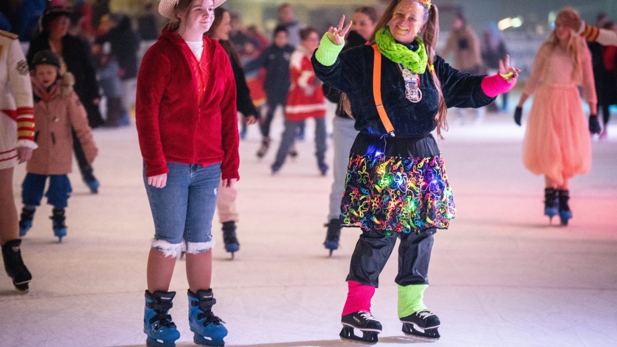 Isabelle (8) ist schon früh mit Mama Chantal (38) angerückt. Die beiden sind fit im Eislaufen und freuen sich riesig auf die Veranstaltung. Die Achtjährige ist klar erkennbar im Verein DJK Lösort Meiderich und wird als Engelchen mit anderen Vereinsmitgliedern die Atmosphäre auf dem Eis beflügeln.