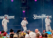 10.30 Uhr, Einmarsch der Ruhrpott-Guggis. Die machen gleich weiter mit sentimentalem Fußball-Patriotismus und blasen Major Tom, dem Publikum entlockt das ein verzücktes Jauchzen der Ekstase. Sogar die kürzesten Pausen zwischen zwei Songs können die Jecken nicht ohne Musik ertragen, da wird dann eben selbst gegrölt, und zwar der kleinste gemeinsame Nenner alkoholgeschwängerter Glückseligkeit: na klar, „Seven Nation Army“.