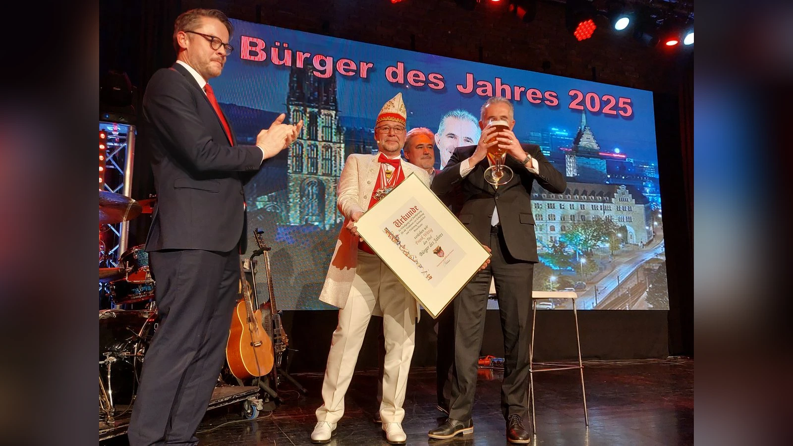 Für Joachim Loosen gab es das Verdienstkreuz in Silber (es gibt noch keine andere Stufe). Der einst tanzende und heute manchmal leider auch singende Präsident der Stadtgarde Rot-Weiß hat in seinem Leben schon fast alles im Karneval gemacht. Ehrenorden wie Verdienstkreuz haben übrigens eines gemeinsam: Sie werden nicht, wie viele andere närrische Auszeichnungen, für eine bestimmte Anzahl von Jahren unfallfreien Feierns verliehen, sondern für individuelle Leistungen.