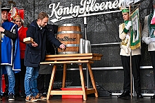Stadtdirektor Martin Murrack eröffnete den Karneval im Namen der Stadt Duisburg. Er tat das auf sympathische Weise: Er zapfte Bier aus einem großen Fass mit Gerstensaft aus der Beecker König-Brauerei. Der Geruch des Bieres lockte den Hoppeditz hervor. „Helau, ihr Jecken. Mit Pils lass‘ ich mich gerne wecken“, bekräftigte die Symbolfigur der Narretei.