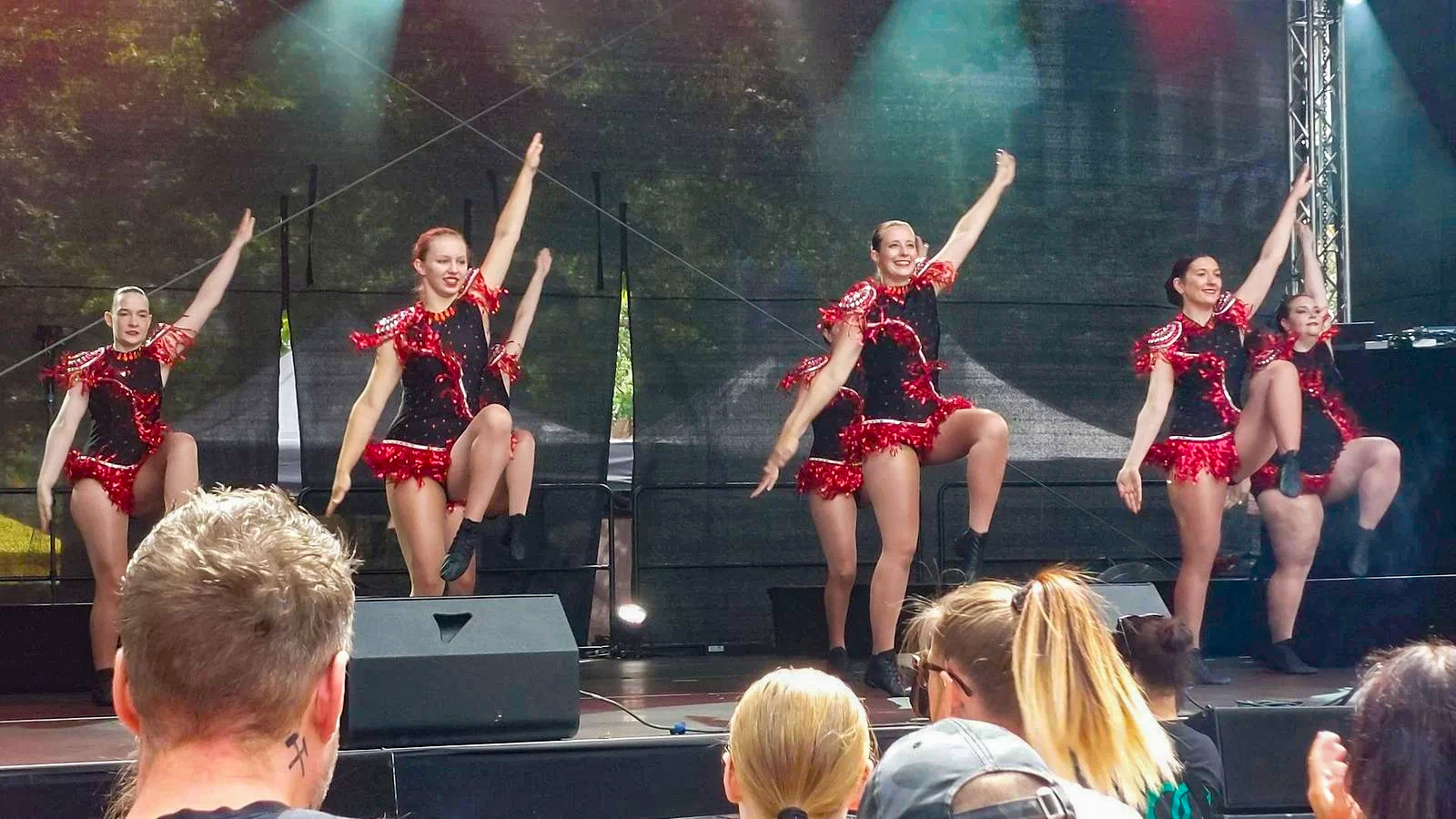 Die „Lecker Mädche“ der KG „Südstern Serm“ erfreuten mit Tanz auf hohem Niveau. Und die „Piraten des Südens“ sangen und musizierten dem Publikum die Gehörgänge frei. Auch bei auswärtigen Programmpunkten bewies der HDK ein sicheres Händchen. Die Band „Kaschämm“ stellte ihren Ruf als Top-Cover-Band unter Beweis. Vergeblich forderten die Musiker allerdings, man möge doch mal 50 Liter Sauerstoff auf die Bühne bringen. Und auch die „Funky Marys“ kamen gut an. Die stimmgewaltigen fünf Mädels aus Köln ließen sich vom tropischen Klima auf der Königstraße nicht bremsen. Was für ein Temperament!