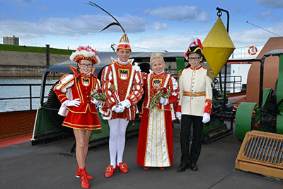 ![]() Pagin Celina (Celina Winkelmann) Prinz Nico II. (Nico Wolters), Prinzessin Emma I. (Emma Wilmes), und Hofmarschall David (David Winkelmann) v.l. |