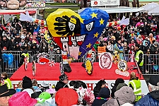 Rosenmontag in Duisburg: Am Opernplatz finden sich zwei Gattungen der Karnevalisten
