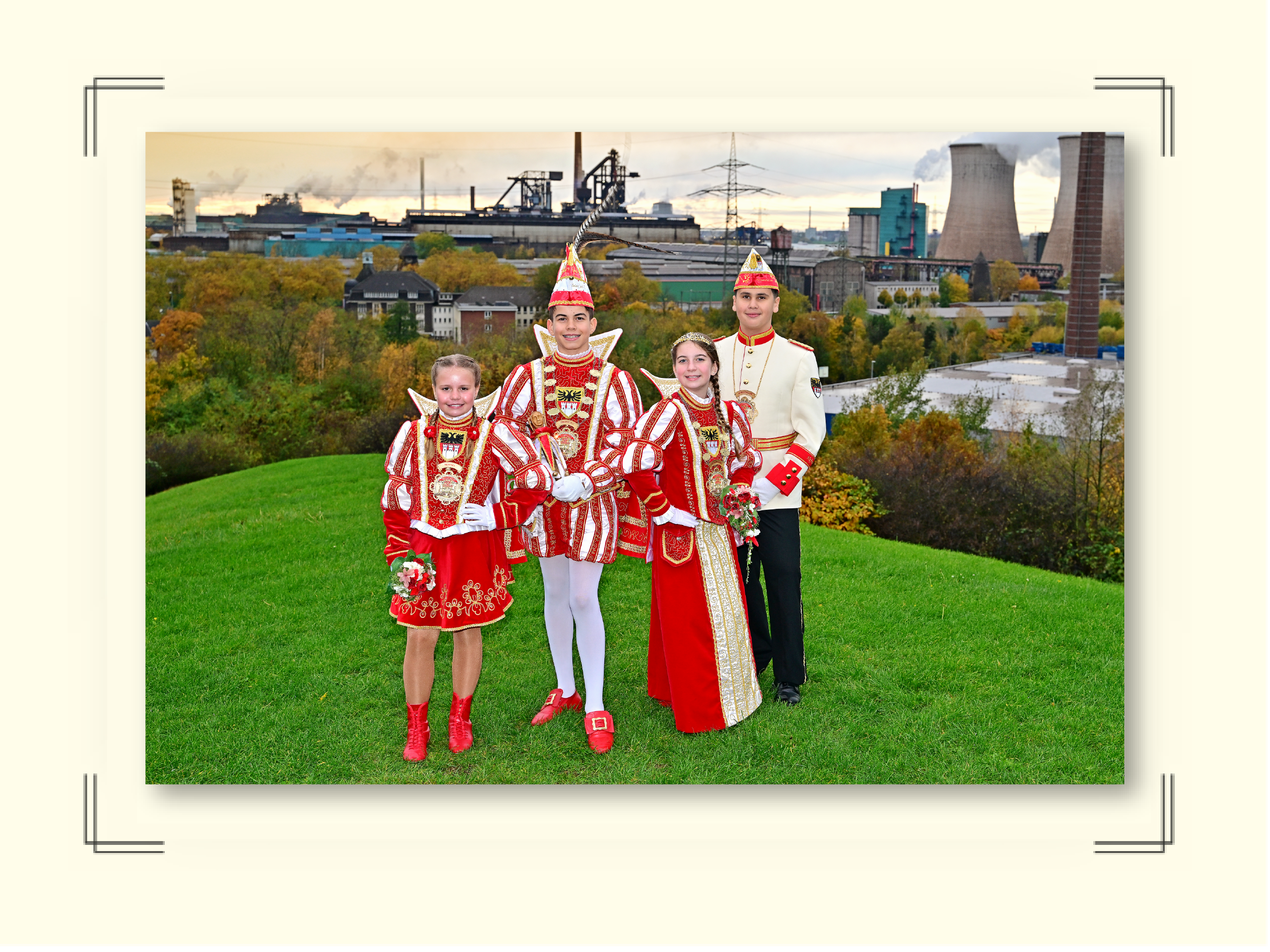 v.l.n.r.: Pagin Paula (Paula Rühl), Prinz Juls I. (Juls Grothuysen) Prinzessin Aileen I. (Aileen Lyx und Hofmarschall Sami (Sami Belahcen)