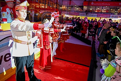 Zum 4. Mal „Karneval on Ice“ . Nach der Premiere 2023 ist diese Veranstaltung weiterhin beliebt. Das (Spaß)Eishockeyspiel der Teams Karneval vs. Stadt Duisburg endete 10:10.